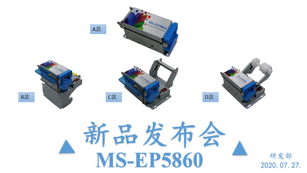 在7月的終章八月的伊始,美松公司召開新品發(fā)布會,繼4月發(fā)布的MS-EP5860之后,受到許多友商的關(guān)注及來自市場的呼聲,在初始機型的基礎(chǔ)上衍生出MS-EP5860系列產(chǎn)品來滿足廣大客戶群體需求。其中為了應(yīng)對不同機器內(nèi)部情況生產(chǎn)的MS-EP5860系列,包括應(yīng)對平板機型超薄機型誕生的MS-EP5860—V,更適用于排隊機、點餐機等等;同時設(shè)計添加了機身結(jié)構(gòu)更為緊湊的MS-EP5860-H,對比傳統(tǒng)58mm打印機而言機身結(jié)構(gòu)更為緊湊小巧,機身側(cè)面長度相較傳統(tǒng)結(jié)構(gòu)縮減三分之一;面對打印不干膠標簽需求的市場前提下研發(fā)設(shè)計出MS-EP5860-B,提供可調(diào)節(jié)紙軸以及應(yīng)對多種規(guī)格標簽紙的出紙嘴,來應(yīng)對更多富有挑戰(zhàn)情況下標簽打印需求。