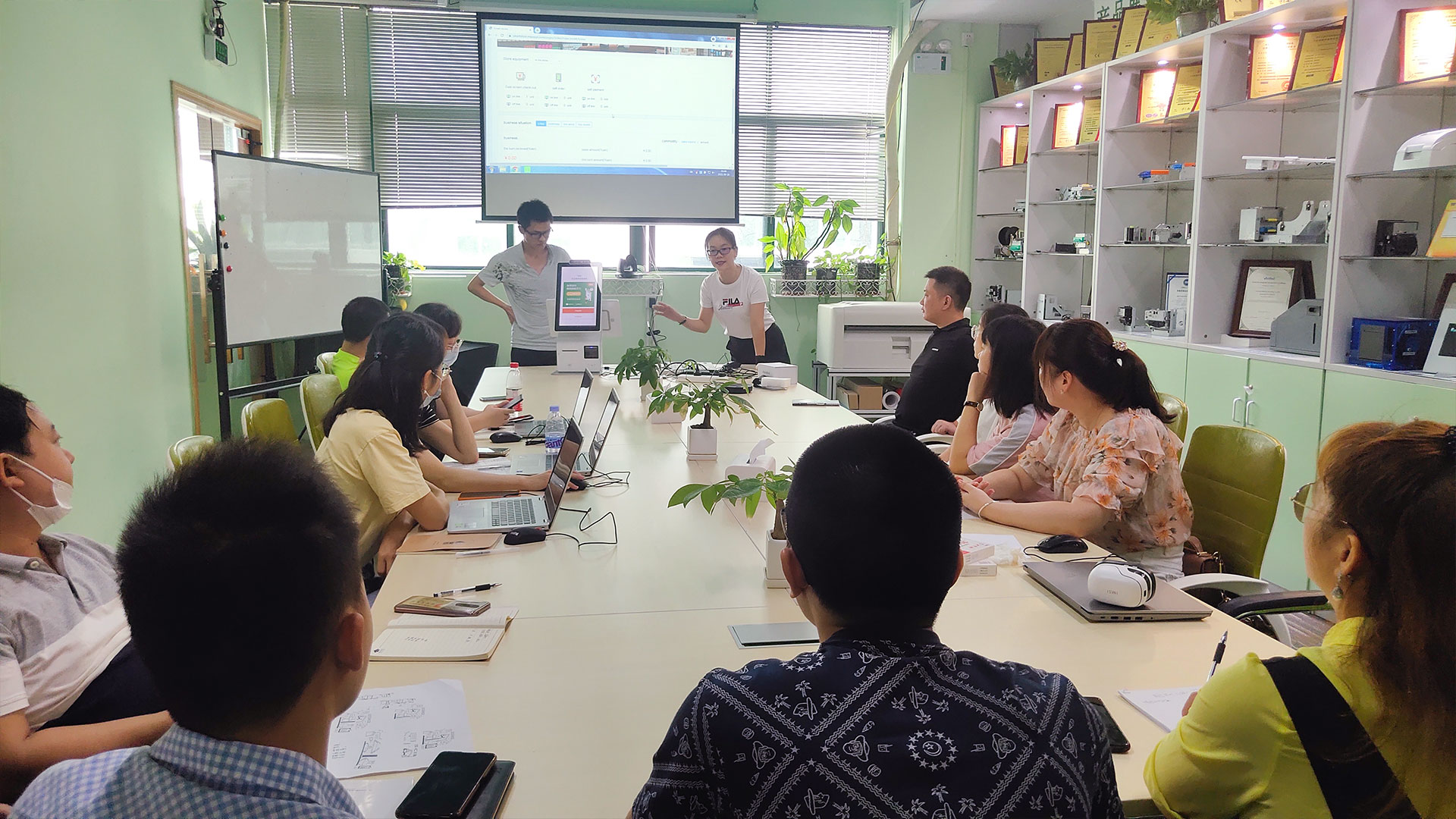 產(chǎn)品線的發(fā)展應(yīng)當(dāng)把質(zhì)量工作放在與市場開發(fā)同等重要位置。守住質(zhì)量紅線、提高質(zhì)量水平是美松集團(tuán)的立足之本;做好專業(yè)技術(shù)培訓(xùn)、統(tǒng)一技術(shù)規(guī)范是向客戶提供高質(zhì)量服務(wù)的必要條件。在產(chǎn)品介紹環(huán)節(jié),市場運(yùn)營專員熊艷艷、軟件工程師劉方以及研發(fā)工程師楊罡分別對(duì)產(chǎn)品進(jìn)行了詳細(xì)的演示與講解。同時(shí)結(jié)合實(shí)際案例與參會(huì)人員進(jìn)行了積極互動(dòng)和交流分享。來自長沙公司的外貿(mào)負(fù)責(zé)人Amy就手持移動(dòng)打印產(chǎn)品、智慧門店商超方案、桌面POS打印機(jī)使用及疑問,技術(shù)人員憑借其豐富的經(jīng)驗(yàn)、扎實(shí)的專業(yè)知識(shí)以及對(duì)公司產(chǎn)品的深刻了解,讓大家對(duì)每一款產(chǎn)品的性能特點(diǎn)、使用方法、注意事項(xiàng)等有了更為全面的認(rèn)識(shí),并針對(duì)實(shí)際工作中常見的疑惑一一提問、擊破。短短半天的培訓(xùn)針對(duì)性強(qiáng),效果顯著,大家紛紛加入討論,認(rèn)真做好筆記。