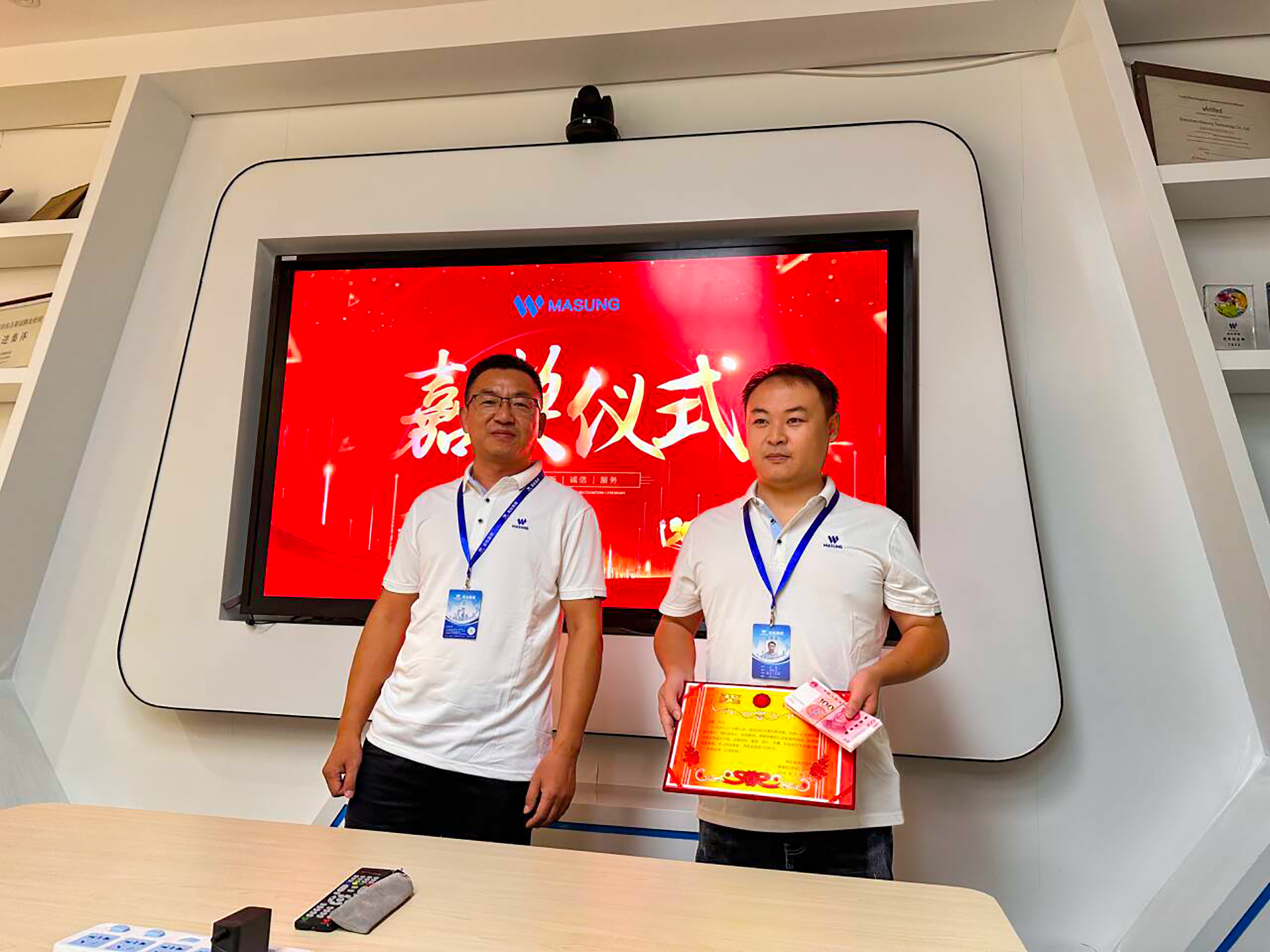 最后,董事長陳斌先生也作了發(fā)言并寄予大家厚望。他說:在充滿競爭與挑戰(zhàn)的商業(yè)世界里,唯有不斷突破自我、勇于創(chuàng)新,才能掌握未來的主動權(quán)。在這段時間里看到,鄧敏表現(xiàn)出極強的積極性和責(zé)任感。他不斷學(xué)習(xí)行業(yè)知識、市場動態(tài),提升自身素質(zhì),用充滿激情的工作態(tài)度影響著團隊的每一位成員。面對困難和挫折,他堅持不懈,迎難而上,用刻苦勤懇的精神感染我們身邊的每一個人。正是這份不畏艱難、勇于創(chuàng)新的精神,為他贏得了客戶的信任,也為公司贏得了實實在在的業(yè)績。希望全體銷售人以他為榜樣,在工作中保持學(xué)習(xí)熱情,勇于迎接挑戰(zhàn),加大拓展新行業(yè)新領(lǐng)域,共同推動公司的發(fā)展,也能創(chuàng)造更高的個人收益!陳董還表示,希望所有銷售人走出去,代表美松代表美松能量,讓美松品牌masung、美松價值、美松平臺擁有的硬件+軟件+耗材服務(wù)、美松技術(shù)研發(fā)專精能力、美松打印機掃描儀產(chǎn)品、美松定位不僅小票據(jù)打印掃描外還有熱轉(zhuǎn)印大打印、美松規(guī)模實力等附加價值,傳遞出去,能為客戶創(chuàng)造更多的價值,與客戶共同發(fā)展。