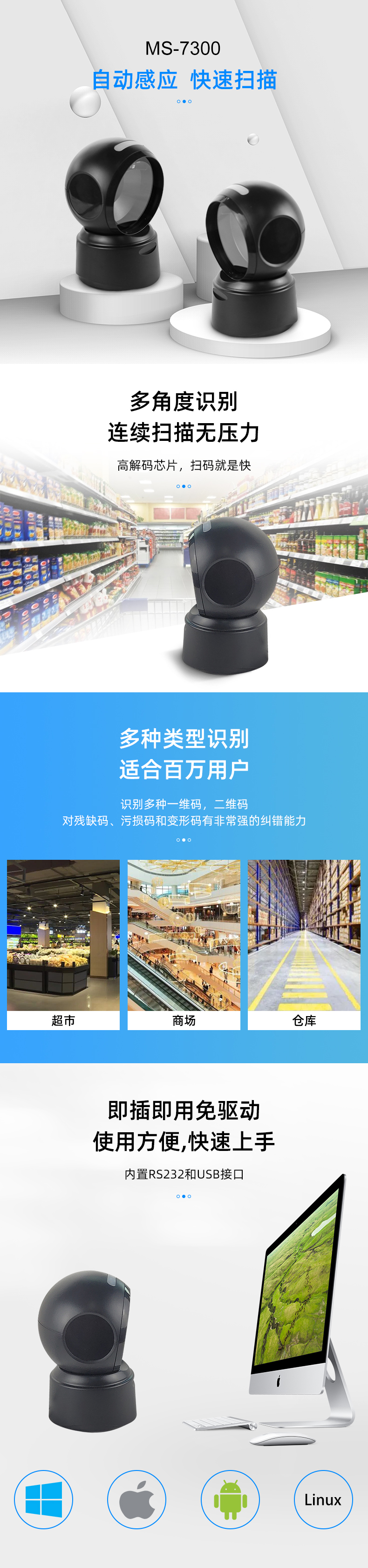 1、卓越的一維/二維條碼識讀性能 ,4M/S超高速運動容差 2、IP52 防塵等級;1.2米抗跌落 3、支持USB和RS232接口 4、支持紙質(zhì),薄膜類,商品碼,付款碼讀取 5、支付寶開票碼、國稅開票碼、航天信息、百旺金賦開票, 微信開票助手,閃電開票