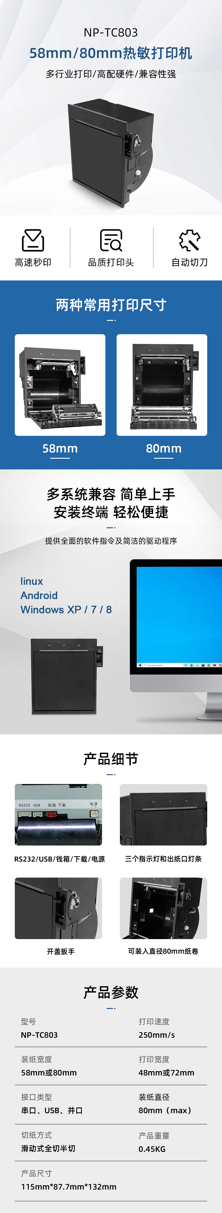 1.擁有易裝紙、滑動式自動切紙等功能;擁有多種安裝方式 2.紙將盡可手動調(diào)節(jié)大小,最精確的紙將盡檢測(可精確張數(shù)) 3.按開蓋扳手;通過開蓋按鍵 ;電腦發(fā)送開蓋指令 4.帶有堵紙器檢測狀態(tài);多樣傳感器協(xié)助控制 5.無人值守內(nèi)嵌式熱敏打印機(jī) 6.醫(yī)療、政務(wù)、零售、餐飲、加油站等行業(yè)的自助終端打印設(shè)備