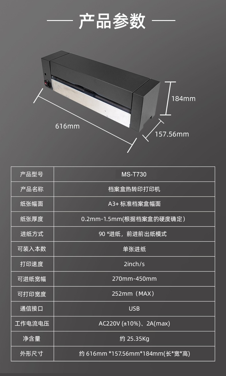 美松MASUNG自主研發(fā)A3+標(biāo)準(zhǔn)檔案盒封面打印機(jī) 1.專業(yè)打印牛皮紙,證件內(nèi)頁(yè),無(wú)酸紙檔案盒 2.對(duì)接API,EXCEL,ERP等數(shù)據(jù)庫(kù)專業(yè)的編輯軟件,自定義打印 3.USB連接操作簡(jiǎn)單,耗材成本低,長(zhǎng)久保存 4.智能打印,整齊規(guī)范化,助力智慧辦公
