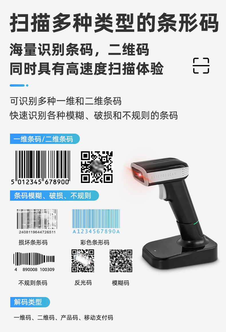 MS-6650Z是一款手持式的無(wú)線帶平臺(tái)掃碼槍,外觀特性在于,不需要使用連接線,無(wú)線USB接收器連接,配備桌面平臺(tái)用于收納擺放和充電;產(chǎn)品特點(diǎn)在于: 全局高速解碼技術(shù) 采用自主研發(fā)的核心技術(shù),極速響應(yīng), 支持快速開(kāi)發(fā)和定制需求 采用二維掃描技術(shù) 兼容一維碼和二維碼的讀取 支持多國(guó)鍵盤 對(duì)不同國(guó)家場(chǎng)景可配置對(duì)應(yīng)輸出鍵盤 人體工學(xué)設(shè)計(jì) 采用經(jīng)典的人體工學(xué)設(shè)計(jì),符合用戶使用習(xí)慣 手機(jī)和紙質(zhì)條碼讀取 采用高速曝光算法,兼容手機(jī)碼和紙質(zhì)碼的 快速讀取