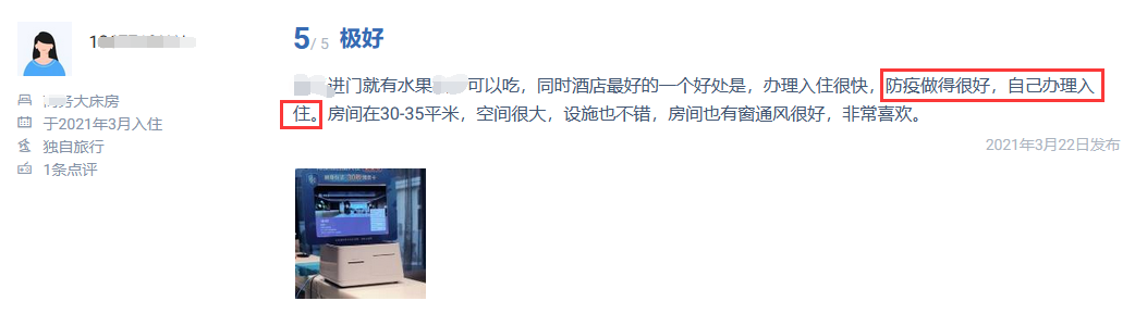下面是體驗(yàn)了自助辦理入住酒店的用戶評(píng)價(jià),不管是和朋友入住、和情侶入住,還是獨(dú)自入住、商務(wù)入住等,都表示自助辦理入住服務(wù)表示滿意,數(shù)字酒店在一手防控疫情一手提高用戶體驗(yàn)感開(kāi)創(chuàng)新模式。