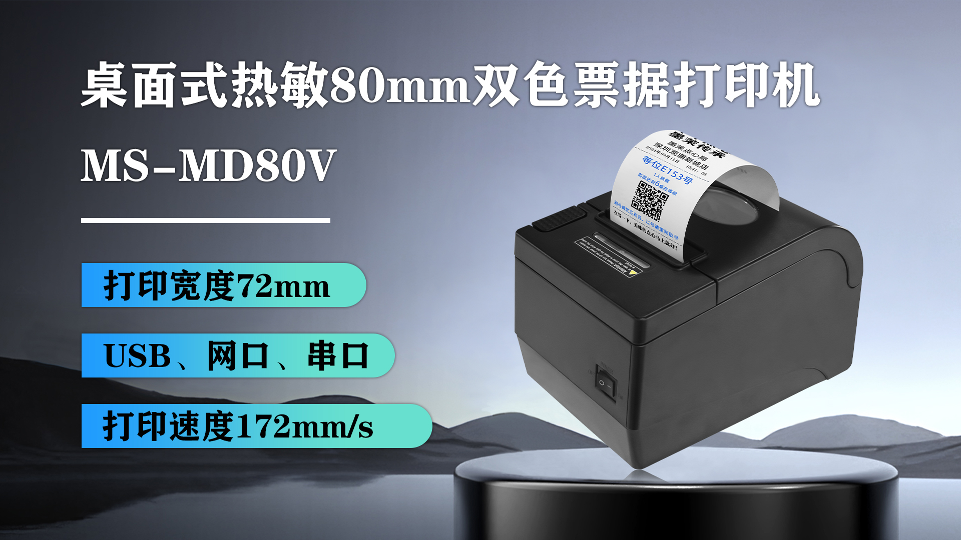 MS-MD80V是一款打印紙寬度為80mm的桌面式熱敏雙色票據(jù)打印機(jī),打印速度可達(dá)到每秒打印170mm長度的紙卷,最大的打印寬度為72mm紙張寬度,兩邊打印紙的寬距各為4mm,能有效的保持打印的隊(duì)列工整和閱讀性,可裝入標(biāo)準(zhǔn)大小的80mm直徑的紙卷,從而能夠長久的使用。