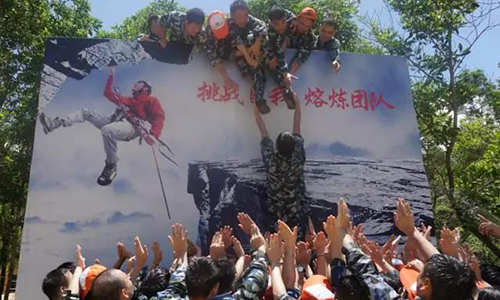第二天8點(diǎn)整,美松同仁們來到"玫瑰海岸"開啟新一天的啟程,其中爬畢業(yè)墻項(xiàng)目深深的觸動(dòng)著我們每個(gè)人內(nèi)心深處最柔軟的部位,留給我們每個(gè)人更多的是感動(dòng)與感觸.規(guī)定時(shí)間60分鐘內(nèi)爬過高墻,不容許借助任何外力和工具,必須沿墻正面上去,每一個(gè)人踩在別人的肩膀上翻越一堵高墻,任風(fēng)吹雨打。能當(dāng)人梯的主動(dòng)趴下為別人搭起人梯,整個(gè)攀爬過程任何人不能發(fā)出任何聲音,我們因?yàn)槠渲械囊粋€(gè)人的吃力出聲而影響游戲規(guī)則,全體同仁受罰下來重新翻爬,每個(gè)人咬著牙,此時(shí)此刻不分男女,沒有埋怨,只有一個(gè)團(tuán)隊(duì)。當(dāng)最后一個(gè)成員劉迪水雙手緊抓倒數(shù)第二個(gè)人黃尤兵的腳,借助個(gè)人手臂力量支撐到最后爬過畢業(yè)墻的時(shí)候,所有人都?xì)g呼了,啊!我們成功了,同事們相互抱在了一起。。。。。。原本有私心的領(lǐng)隊(duì)自告奮勇的向教練舉手自薦當(dāng)總指揮的那一刻,她自私的以為當(dāng)了指揮官可以不用辛苦的翻越那座高達(dá)四五米高的畢業(yè)墻,此時(shí)此刻,更多的是羞愧。當(dāng)看到陳總從始至終當(dāng)主力人梯用肩膀扛上每個(gè)同仁時(shí)肩膀上留下的瘀青,周總監(jiān)從第一個(gè)爬上墻至拉起全體58位同仁時(shí)留在手臂上的劃痕,甘為人梯的黃經(jīng)理汗如雨下、當(dāng)繩子助力最后一位同仁的黃尤兵全身上下的帶著血跡的傷痕,還有很多沒有被點(diǎn)名的同仁咬著牙忍痛的堅(jiān)持,女將廖路嬌默默的用單膝跪地當(dāng)副梯默默支撐最后一位隊(duì)員的奉獻(xiàn)精神時(shí)。小編作為領(lǐng)隊(duì)作為總指揮官坐在地上抱著雙臂哭了,任眼淚劃過臉龐。。。。。。更多的只是感動(dòng),這個(gè)團(tuán)隊(duì)給予的力量,這個(gè)團(tuán)隊(duì)的凝聚力。“翻越求生的畢業(yè)墻”訓(xùn)練是對(duì)我們意志的考驗(yàn),4米高的筆直的石墻,沒有任何工具,大家齊心協(xié)力共同努力,征服"石墻",但是更讓我們無法忘懷的是作為人梯底座的隊(duì)員不知肩上,身上受了多少“踐踏”,更讓人敬佩的是為了幫助最后一名隊(duì)員順利攀上畢業(yè)墻,取得最終勝利的隊(duì)員,使同舟共濟(jì)的團(tuán)隊(duì)精神得到了最好的升華。最后男女同事們分別圍成二個(gè)大圈,將總指揮官圈在最中間,發(fā)表最真誠的感恩肺腑之言,當(dāng)問及對(duì)美松的未來,對(duì)總經(jīng)理的決策,有沒有信心的時(shí)候,所有同仁激情四射異口同聲的回來:有!有!有!