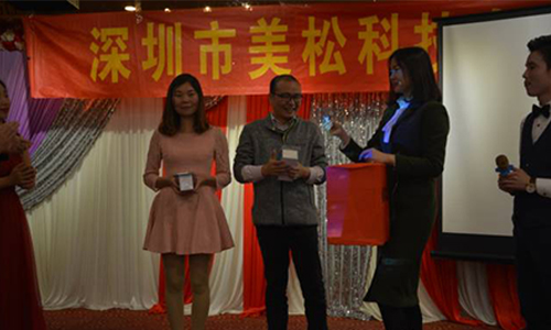 隨著優(yōu)秀節(jié)目競爭的結(jié)束,抽獎(jiǎng)環(huán)節(jié)再次掀起熱情的高潮。公司領(lǐng)導(dǎo)與員工親情互動(dòng),抽獎(jiǎng)活動(dòng)激動(dòng)人心,歌聲、掌聲、歡呼聲一直在會(huì)場上起伏蕩漾。其中最令人感動(dòng)的一幕是,為了感謝員工們一直以來對美松的支持與貢獻(xiàn),總經(jīng)理陳斌先生還特意為這些同仁們準(zhǔn)備了最特別的禮物--價(jià)值上萬元的名表各一枚。
