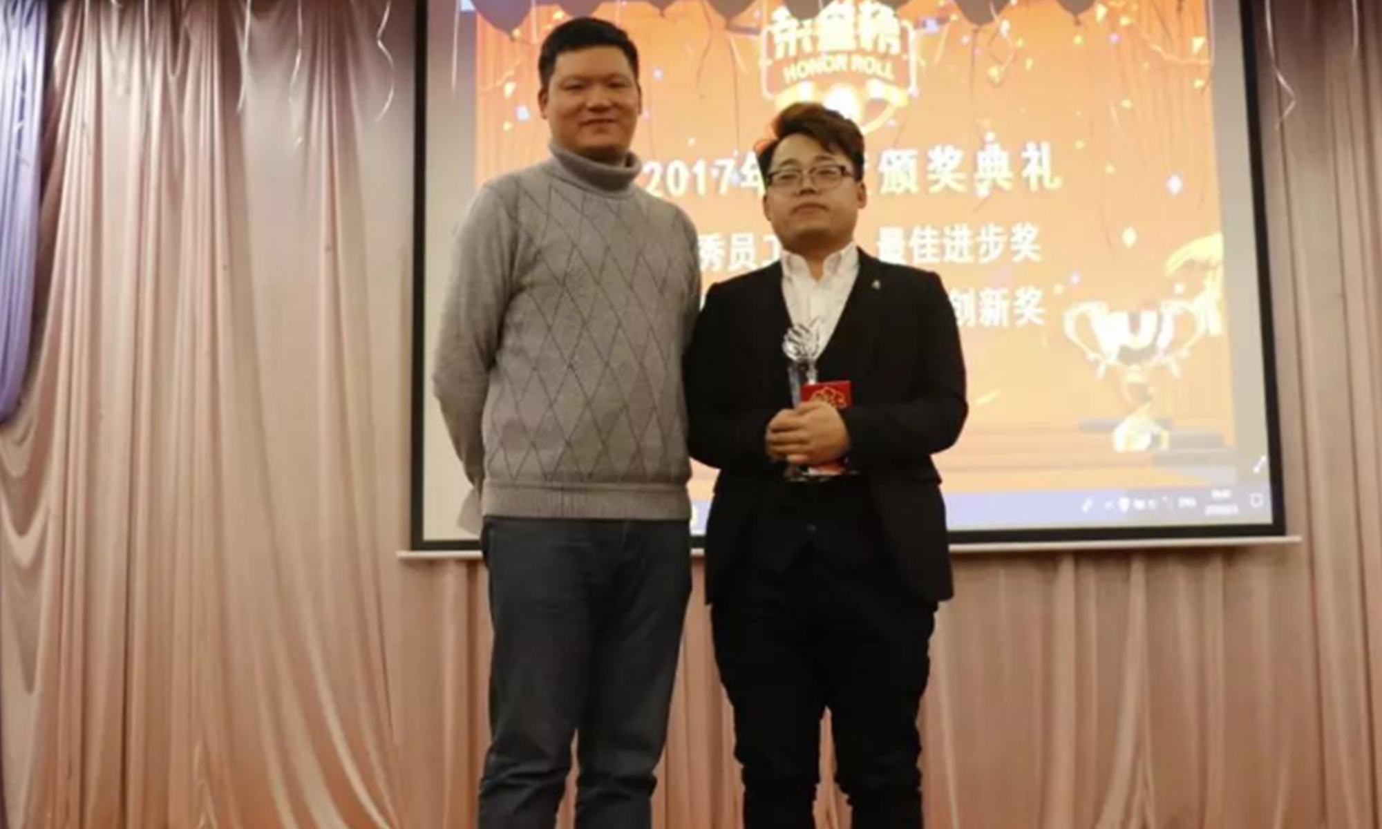 在過去一年里,公司業(yè)績上了一個臺階,規(guī)模快速擴(kuò)展,這些都離不開公司管理團(tuán)隊(duì)及全體員工的努力和付出。節(jié)目表演完畢后,主持人激情洋溢地宣讀2017年度獲得“優(yōu)秀員工獎”、“最佳進(jìn)步獎”、“最佳新人獎”、“最佳創(chuàng)新獎”、“最佳項(xiàng)目獎”等11位獲獎?wù)叩拿麊危@獎?wù)邞阎佣d奮的心情走上領(lǐng)獎臺接受公司領(lǐng)導(dǎo)的嘉獎,董事長陳斌先生還為每位獲獎人員頒發(fā)榮譽(yù)獎杯及獎金。每位獲獎?wù)咭舶l(fā)表獲獎感言,從他們的獲獎感言中,我們深深的感受到了他們對公司的堅(jiān)定信念以及對未來的期望,他們就像夜空里閃亮的星,是公司全體員工的好榜樣,值得我們每一個人去學(xué)習(xí),然后在未來的日子里為公司創(chuàng)造更大的價值。