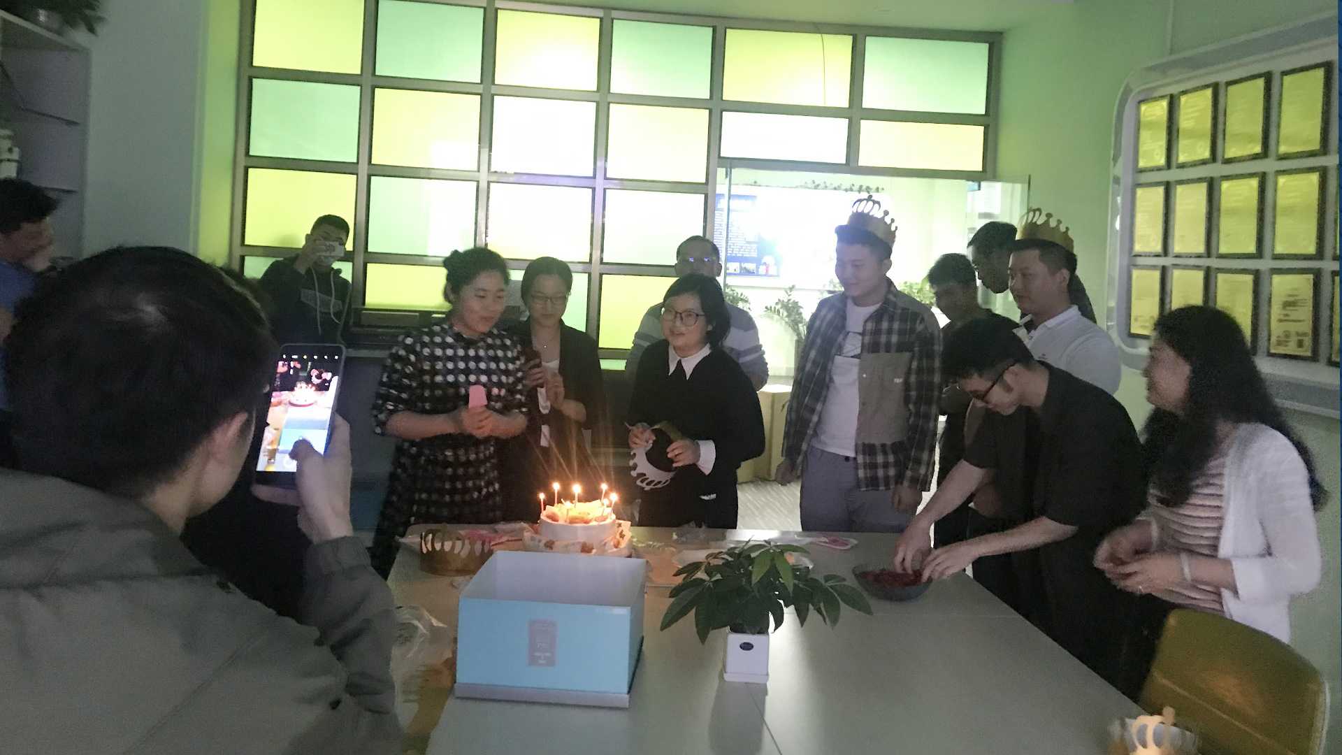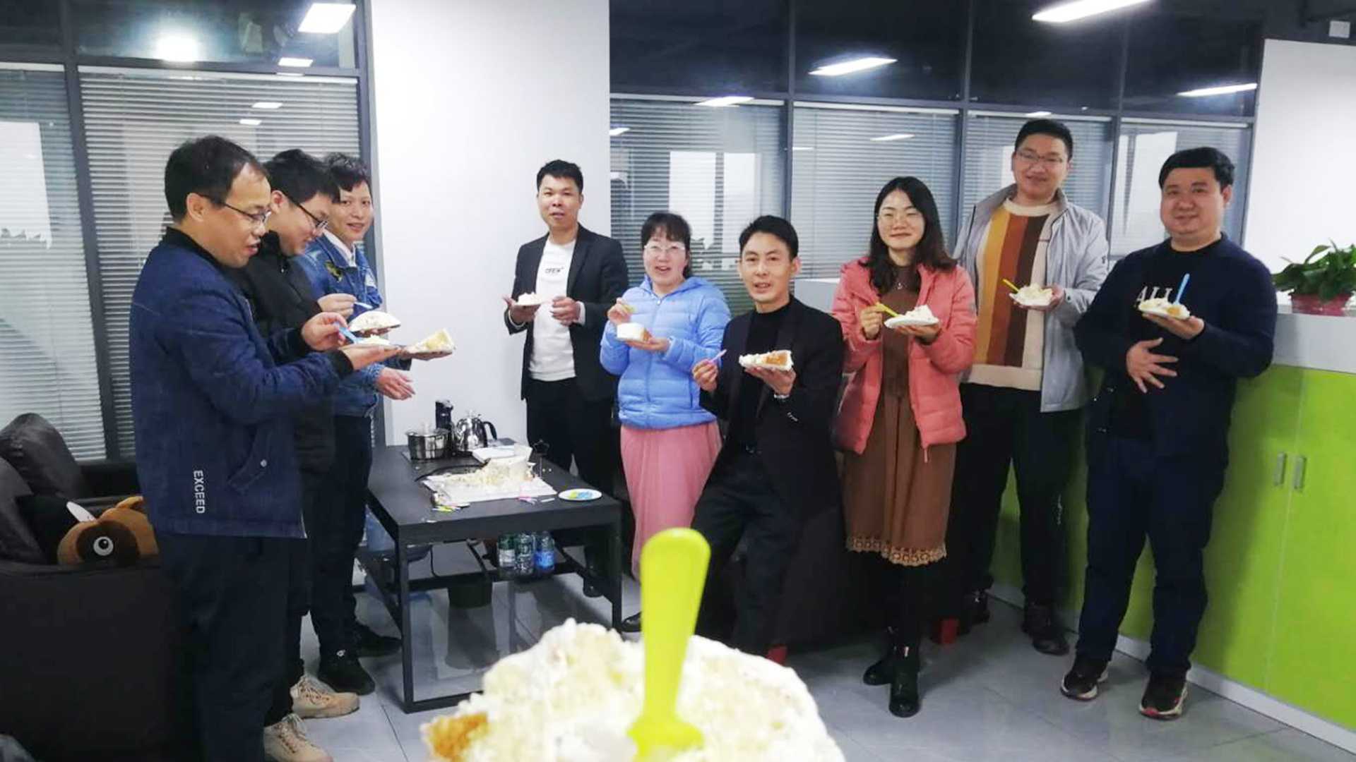 美好的時(shí)光總是短暫的,但心中記憶卻是永恒的。在今天這個(gè)特殊而又富有意義的日子,同事們彼此分享蛋糕的同時(shí),用笑容傳遞出的青春味道,甜蜜而美好!也為一整天的辛勤工作悄然劃上一個(gè)喜悅而又圓滿(mǎn)的句號(hào)!