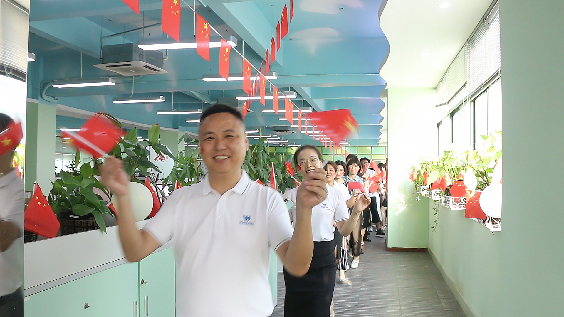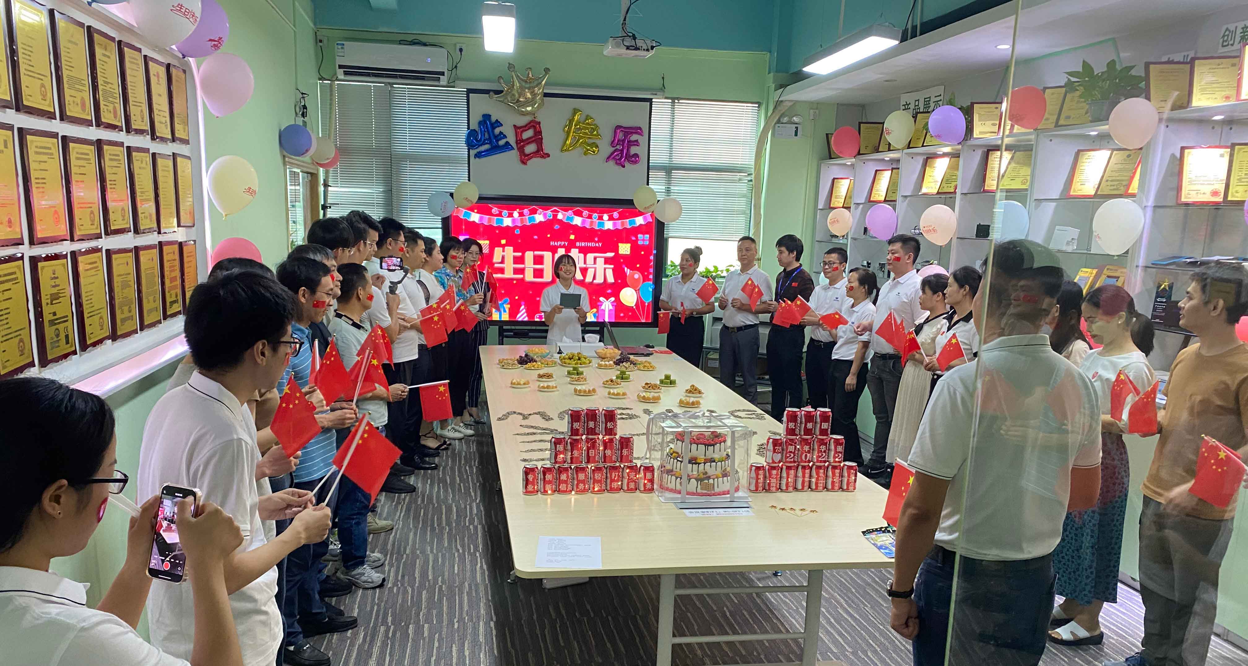 一大早,行政部與市場(chǎng)部的同事們就著手布置辦公室,五彩“生日快樂(lè)”氣球與“中國(guó)心”五星紅旗相呼應(yīng),營(yíng)造出格外濃厚的國(guó)慶氛圍。全司上下在紅旗飄揚(yáng)下辦公,感嘆何其有幸生于你懷,承一脈血流淌,吾國(guó)萬(wàn)疆以仁愛(ài),這是我們千年不滅的信仰。