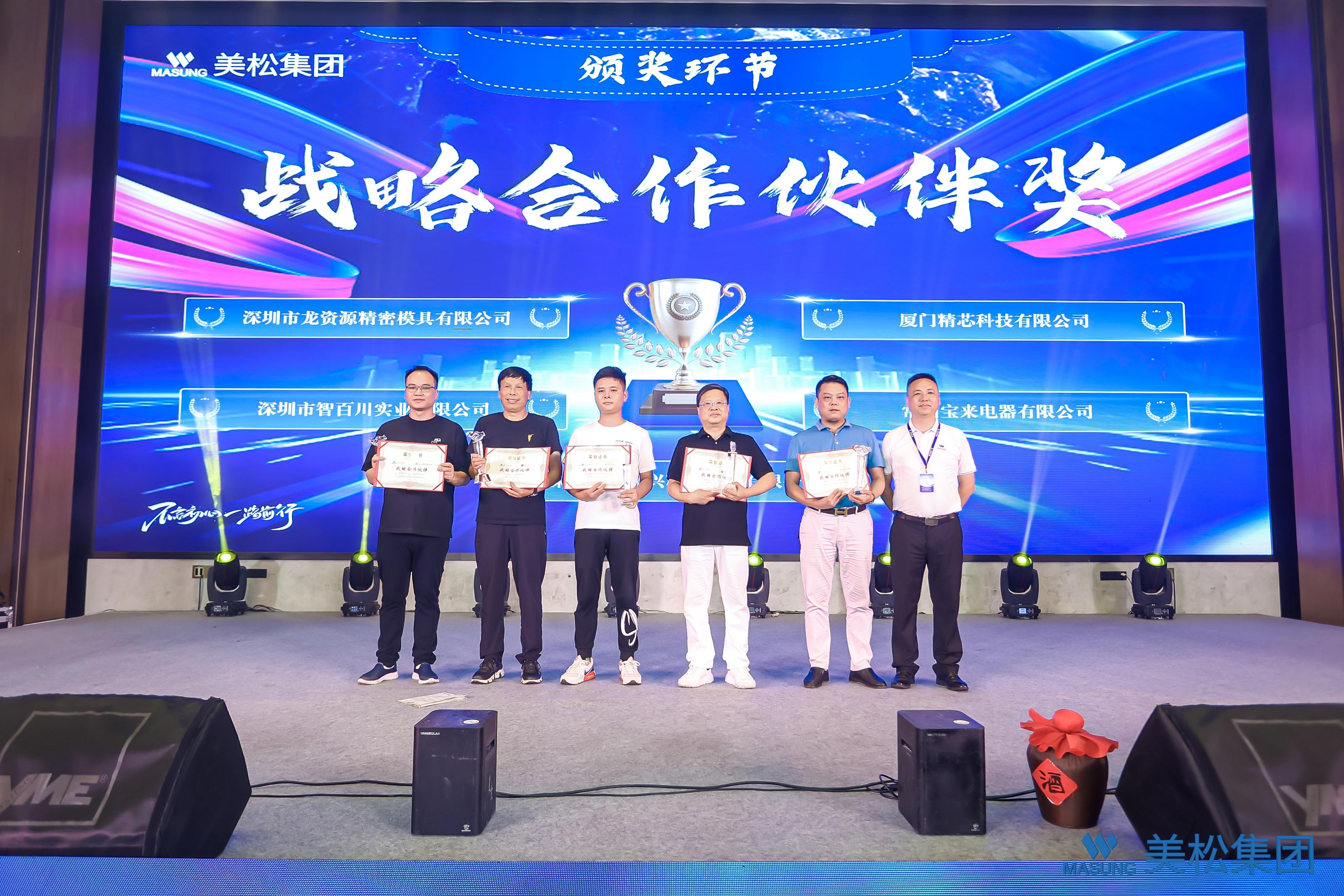美松人為感謝所有陪同美松風(fēng)雨兼程,一路前行的合作伙伴們。現(xiàn)場(chǎng)為優(yōu)質(zhì)合作伙伴頒發(fā)了陪伴成長獎(jiǎng)、戰(zhàn)略合作伙伴獎(jiǎng)、優(yōu)秀供應(yīng)商獎(jiǎng)。思想創(chuàng)造價(jià)值,才智彰顯風(fēng)華,一直以來和美松優(yōu)勢(shì)互補(bǔ),共求發(fā)展。感謝他們用真誠贏得信任,用品質(zhì)換來永恒。嚴(yán)把質(zhì)量關(guān),為美松呈現(xiàn)高品質(zhì)的產(chǎn)品,為鞏固美松品牌形象創(chuàng)下驕人的成績;感謝他們對(duì)待美松始終堅(jiān)定的開啟“攜手并進(jìn)”的馬達(dá),積極配合、腳踏實(shí)地。