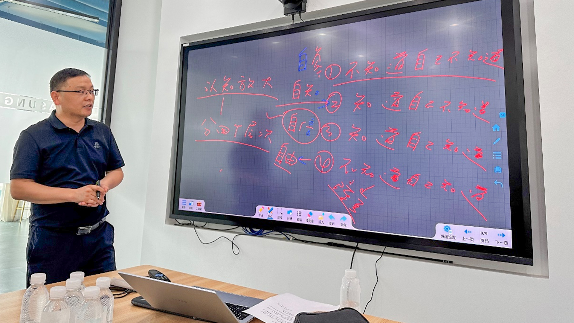 為了讓管理者更好理解體系的實際運作,饒老師結合企業(yè)實際案例,幽默風趣地講解了如何落實標準、不斷優(yōu)化流程。作為專精特新的美松信息公司,也是小巨人預備企業(yè),如何在信息安全,職業(yè)健康安全,人權,產(chǎn)品CCC、UL、CE認證等方面做的最好,如何在日常工作中識別風險、制定應對措施;如何通過PDCA實現(xiàn)持續(xù)改進。培訓過程中,饒老師還生動的把人的認知分為四個層次:自負、自知、自信、自由。