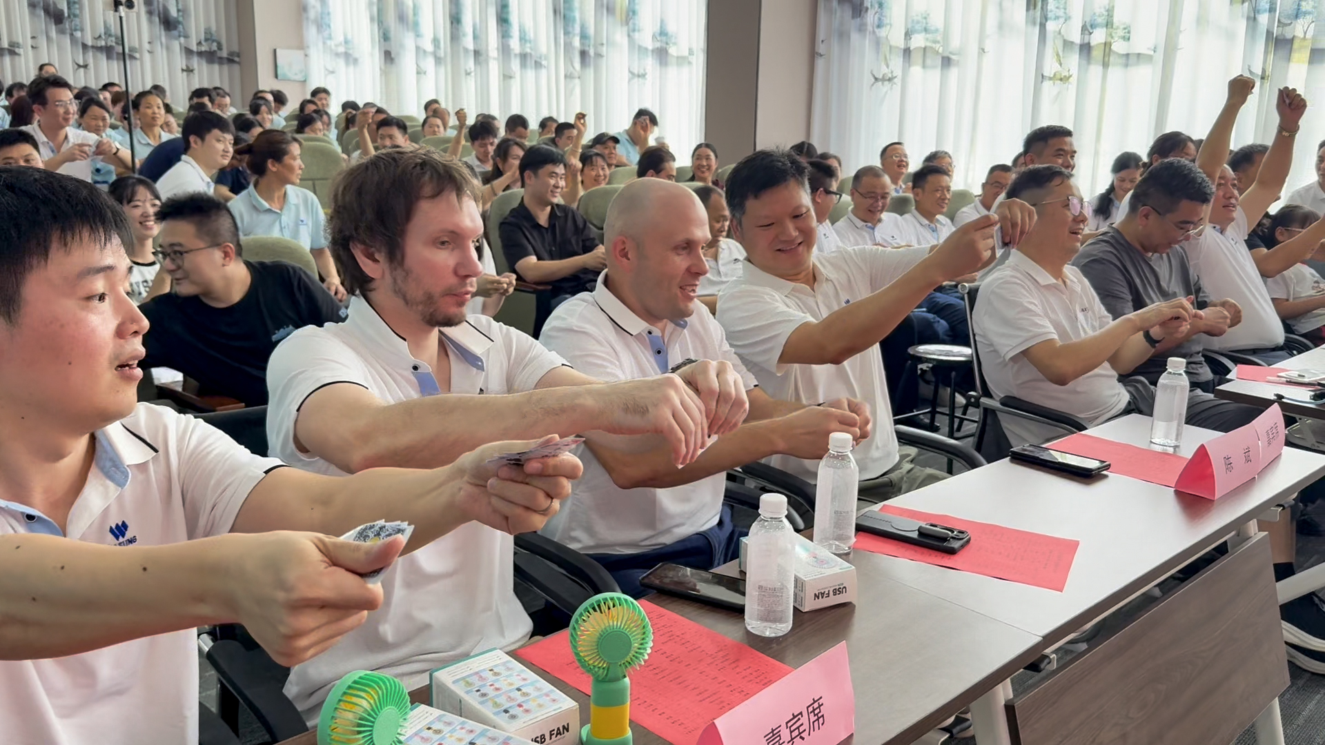 17點30分盛典晚宴,首先由熱情激昂的董助coco上臺發(fā)言,打開了美松人與美松嘉賓們溫暖而激情的交流模式。餐桌上的對話、合作的契機在輕松的氛圍中展開,情感與商務的界線在這一刻變得模糊而自然。緊隨其后的抽獎環(huán)節(jié),將整場年度盛典大會的熱度推向頂點,現(xiàn)場互動頻繁,笑聲與掌聲交織,幸運與祝福在空中飄散,成為對美松員工辛勤付出最真切的回饋。