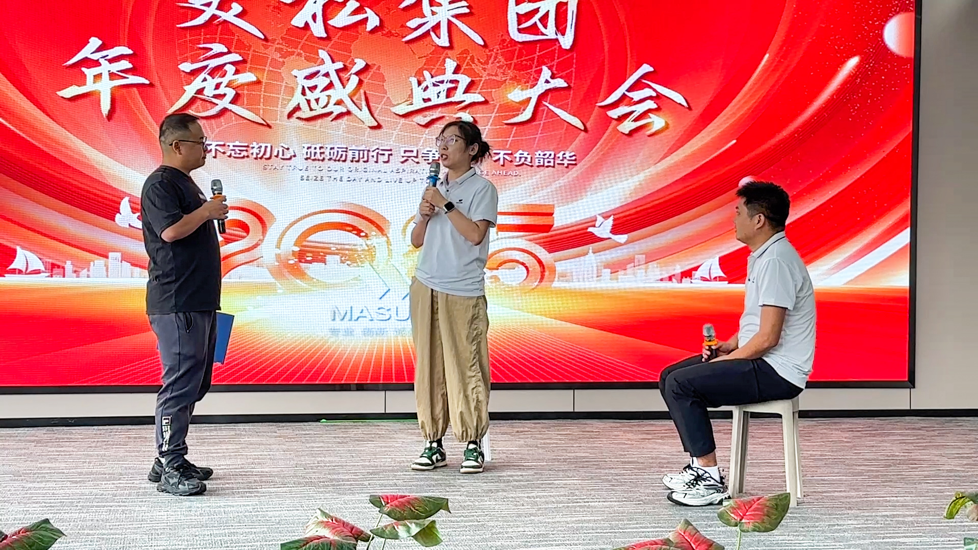 在第19個節(jié)目表演結束后評委緊張的打分間隙,舞臺聚焦落在了美松集團總經(jīng)辦coco身上,她的成長故事更是點燃全場。這位在美松深耕15年的老員工,用歸屬感,價值感與成長空間與美松共生,這份榮譽與歲月的積淀,使她的發(fā)言格外具有穿透力。她以真誠的語氣回顧自己從初入美松的青澀,到如今肩負重要管理職責的自信旅程;也見證了公司從10來人的團隊發(fā)展至今,在行業(yè)內(nèi)具有一定影響的力量;從點滴崗位成長到跨部門協(xié)同推進,從個人素養(yǎng)的持續(xù)提升到對公司愿景的堅定擁護,這些分享如同一面鏡子,照見了無數(shù)同事的努力與堅持。她動情的從“責任、信任、情懷、堅定“四個維度展開與美松人的成長節(jié)點,也表達了對未來的無限期待。只有大家保持初心持續(xù)學習才能將美松MASUNG品牌,美松的打印機產(chǎn)品,美松的完美服務帶向新的高度!最動人心弦的一幕,是她對“認同感與共同成長”的真摯呼喊——愿越來越多的美松人愿意和她一樣,認可美松、信任美松、與美松共同成長。當coco問起現(xiàn)場美松人,是否愿意跟她一樣,與美松一起成長,5年,10年,20年,30年時,掌聲雷動之中聽到的都是回應聲:“好”!