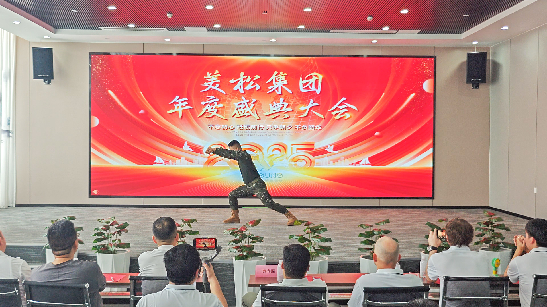 整場節(jié)目表演活動都以“成長”為主線,貫穿美松個人成長、美松組織成長與打印機行業(yè)成長三位一體,強調(diào)“專業(yè)、創(chuàng)新、誠信、服務”的美松價值文化。璀璨舞臺上,一場跨越時空的視聽盛宴《無價烙印與美松傳承》-以負責人coco的身份獨白故事展開的一部震撼的宣傳片,通過光影交織的鏡頭語言,帶領觀眾穿越美松的成長歷程,19年的風雨路程提醒著我們,真正的傳承不是停留在口號,而是在每一天的細微行動中繼續(xù)前行。無論是資深老員工,還是新加入的同事,都將在一起,把夢想變成可感知的現(xiàn)實。以“恒進”的步伐,致敬那些日常里追求極致的人;以堅定的信念,迎接每一個新的挑戰(zhàn);因為只要我們同心,必將勾勒出“匠心鑄就信賴”的美松品牌內(nèi)核:明天會更好!隨著音樂的響起,全體美松人都加入了和聲,歌聲中既有對過往合作的感恩,也有對未來共贏的期許.“讓我們的笑容充滿著青春的驕傲,為明天獻出虔誠的祈禱!”大屏幕同步播放員工們自發(fā)用人體藝術形式展示的“MASUNG”LOGO珍貴影像,將現(xiàn)場氛圍推向高潮。這不僅是一場藝術盛宴,更是美松人對美松的深情告白:“無價烙印”象征著每個美松人與美松的深厚情誼;“美松傳承”寓意著未來攜手共進的堅定承諾。而“無價烙印與美松傳承”更是我們美松打印人的合作價值與美松精神。