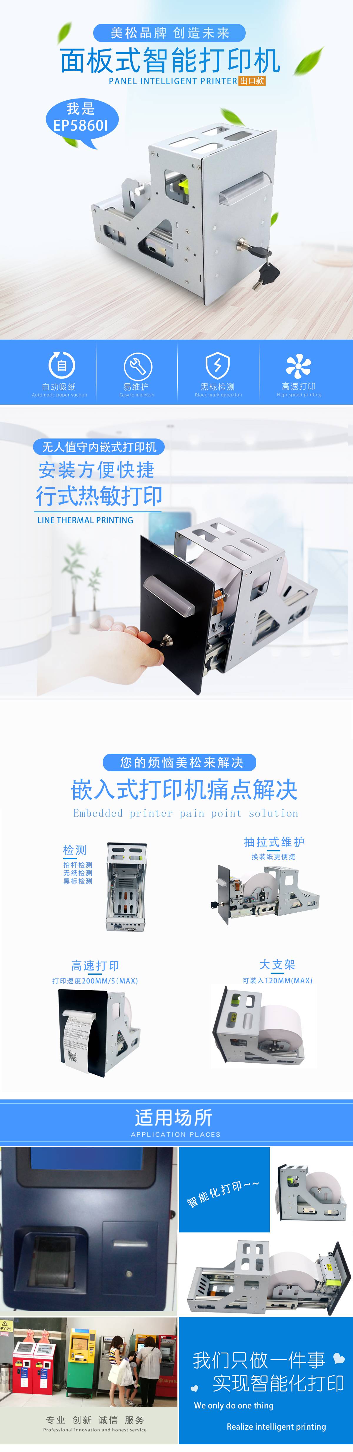 微型打印機介紹:與80mm微型熱敏打印機不同,這款是58MM的微型打印機,型號為EP5860I微型打印機是一款58mm嵌入式微型打印機,不同于其他58MM打印機,這款嵌入式微型打印機配有開關鎖鑰匙,放心應用,只需要簡單安裝就能實現(xiàn)打印功能的打印模塊,嵌入在不同的終端設備,例如加油站、餐飲收銀機、排隊繳費機等,微型熱敏打印機是儀器儀表,超級市場,便利店,郵政,銀行,煙草專賣,公用事業(yè)抄表,移動警務系統(tǒng),移動政務系等行業(yè)的自助終端打印設備。