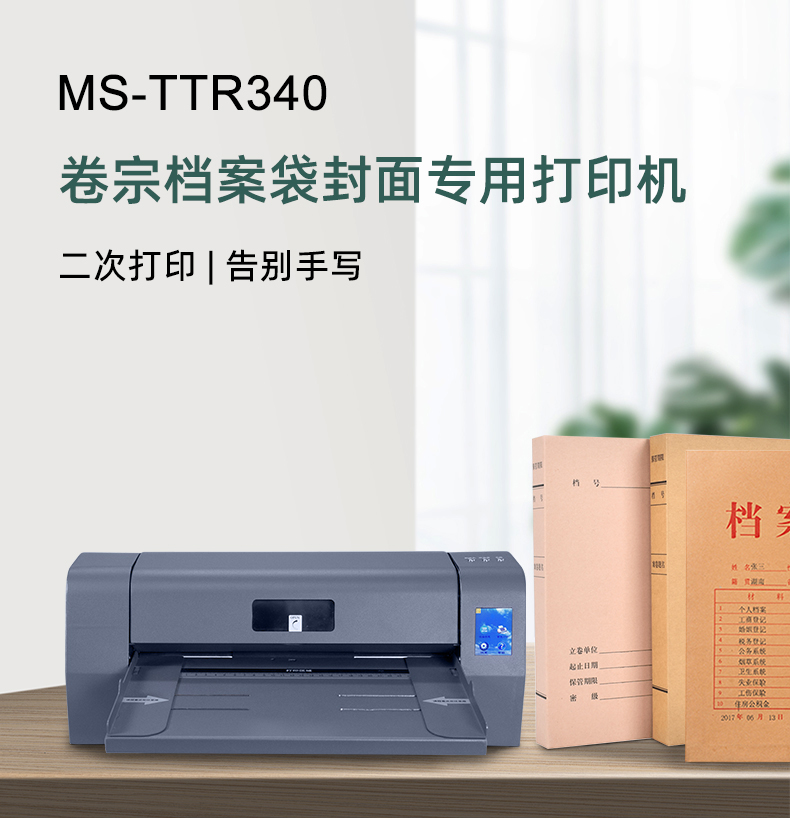 美松MS-TTR340熱轉(zhuǎn)印打印機,熱轉(zhuǎn)印設(shè)備是A4/A3卷宗封面打印機,針對已印刷卷皮封面進行二次加印的設(shè)備,或單張空白版面牛皮紙,無酸紙進行打印.采用碳帶熱轉(zhuǎn)印方式打印,文字清晰耐刮永不褪色.電腦排版完即可通過USB打印無需制版,方便快捷成本低廉,機構(gòu)可靠性高,操作,維護簡單.