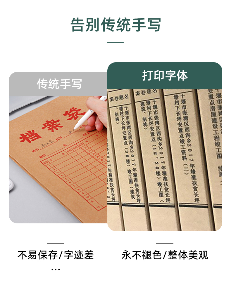 熱轉(zhuǎn)印打印機原理:熱轉(zhuǎn)印技術(shù)利用碳帶介質(zhì)通過熱敏片遇熱和壓力轉(zhuǎn)印到紙或薄膜的過程,當卷宗卷皮的單張空白版面牛皮紙,無酸紙,證件內(nèi)頁紙通過打印機的打印頭和壓軸時,將碳帶上的碳粉轉(zhuǎn)印到標簽上, 最終形成文字或圖案。