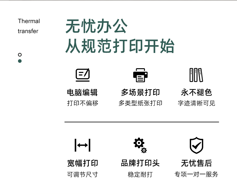 熱轉(zhuǎn)印打印機適用范圍:適用于公檢法,檔案局,審批局,醫(yī)療診所,教育機構(gòu),煙草,房產(chǎn)管理,電力,鐵路等行業(yè).