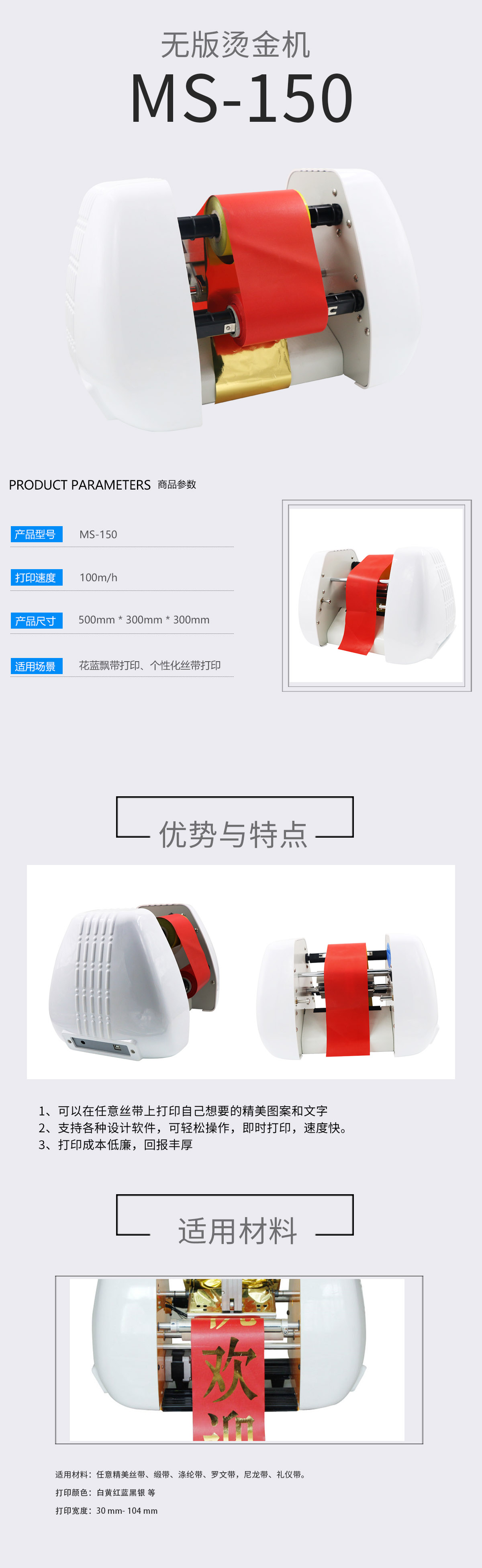 美松MASUNG全自動絲印機是針對絲帶飄帶全自動絲印的一種印花設(shè)備,是數(shù)碼印花機設(shè)備,自動絲印機體積小桌面擺設(shè),速度快是普通打印機的5倍,打印成本超低,每條僅需3毛線,任意在絲帶上打印精美的圖案,文字,標(biāo)志,超寬的打印幅度,可滿足不同客戶的需求,邊排版邊打印,現(xiàn)打現(xiàn)用,方便快捷,支持各種軟件設(shè)計,可輕松操作即時打印,采用進口高精度,防靜電,防劃傷打印頭,經(jīng)久耐用;個性化設(shè)計打印,金箔效果,使花籃,絲帶的整體效果美妙絕倫;使用簡單,操作方便.