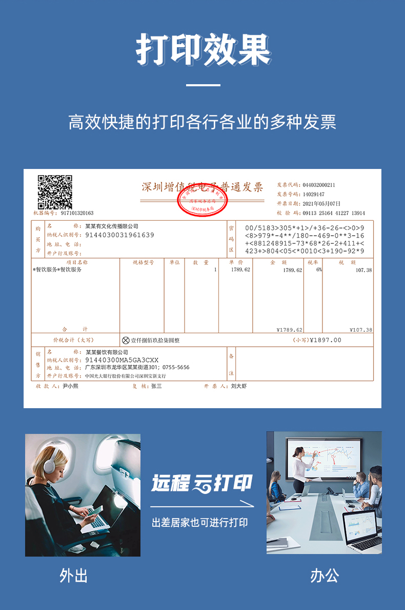 電子發(fā)票自助打印機(jī)介紹:美松電子發(fā)票打印機(jī)支持云打印,這款6寸發(fā)票打印機(jī),可打印160mm寬的紙卷,電子發(fā)票采用長(zhǎng)效熱敏紙保存時(shí)間長(zhǎng),用在電子發(fā)票自助打印終端,消費(fèi)者在電子發(fā)票自助打印終端掃碼填寫(xiě)發(fā)票信息自動(dòng)打印紙質(zhì)電子發(fā)票,節(jié)省企業(yè)時(shí)間成本,提高工作效率。