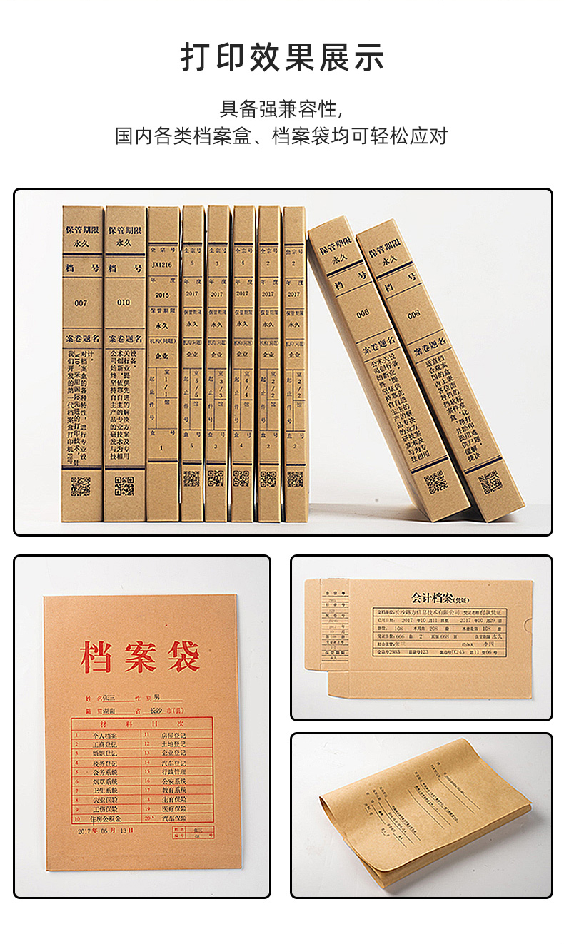 1.專業(yè)檔號章打印 2.卷皮卷宗打印專用 3.打印自動編號,省心省力 4.彩色顯示屏控制 5.打印內(nèi)容長久保存不褪色 6.碳帶熱轉(zhuǎn)印技術(shù)