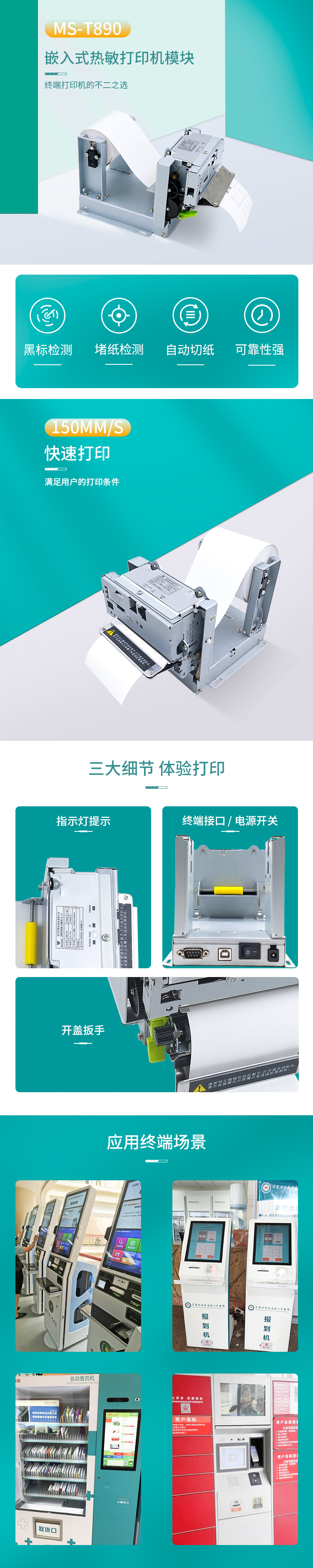 美松(MASUNG)80mm嵌入式熱敏打印機(jī)MS-T890打印機(jī)是一種新型行式熱敏打印機(jī),擁有自動(dòng)進(jìn)紙、自動(dòng)切紙、黑 標(biāo)檢測(cè)等功能,另可增加防堵紙、紙將盡等功能。適用于KIOSK、自助查詢(xún)終端、排隊(duì)機(jī)、ATM、停車(chē)場(chǎng)憑 條打印、彩票打印、日志打印、自助話(huà)費(fèi)清單打印機(jī)、自助發(fā)票打印、自助繳費(fèi) 機(jī)等領(lǐng)域的使用。