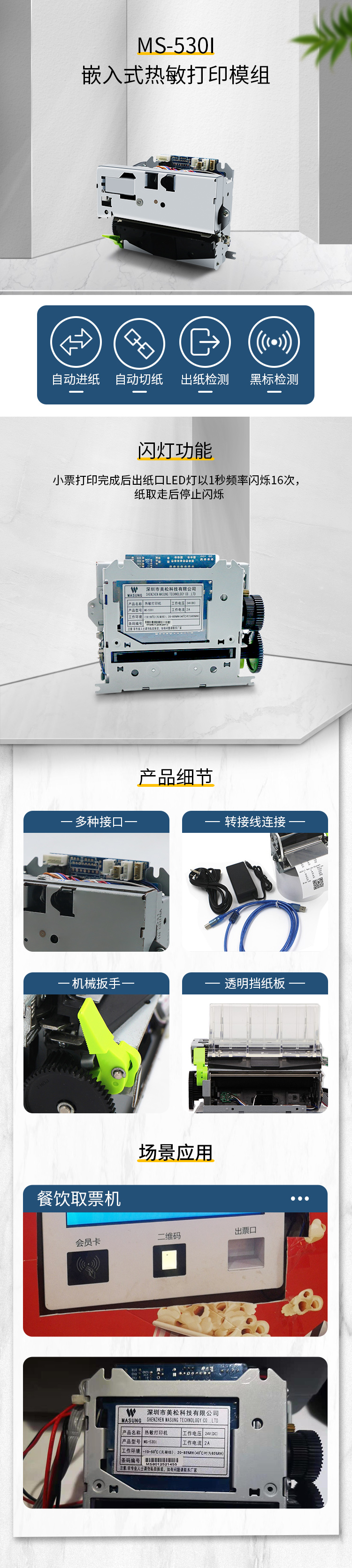 MS-530I 打印機(jī)是一種新型行式熱敏打印機(jī),擁有自動(dòng)進(jìn)紙、自動(dòng)切紙、黑 標(biāo)檢測等功能,另可增加防堵紙、閃燈、紙將盡、出紙檢測、吐紙器等功能。支持多種條形碼的打印,包括:EAN8、EAN13、CODE39、CODE128 等多種 一維條形碼的打印,同時(shí)支持 PDF417, QRCODE 等二維碼的打印。