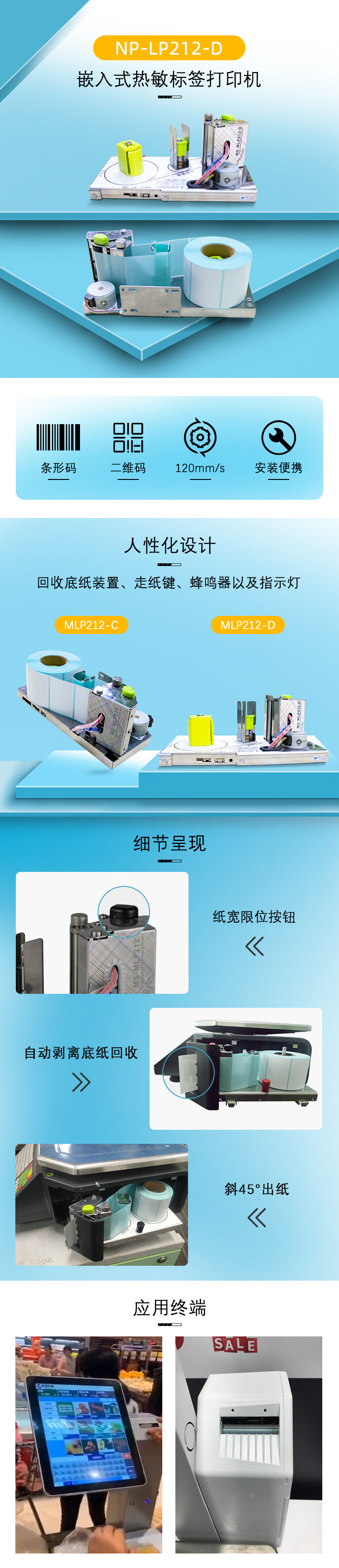 美松MASUNG自主研發(fā)標(biāo)簽紙打印機(jī) 1.可安裝大直徑紙卷120mm(max) 2.條碼及二維碼打印功能 3.自動(dòng)剝離不干膠紙且回收底層連續(xù)紙 4.多樣傳感器協(xié)助控制 5.人性化基礎(chǔ)功能使終端用戶用起來更簡單、方便 6.廣泛應(yīng)用于零售、餐飲、物流、醫(yī)療等行業(yè)