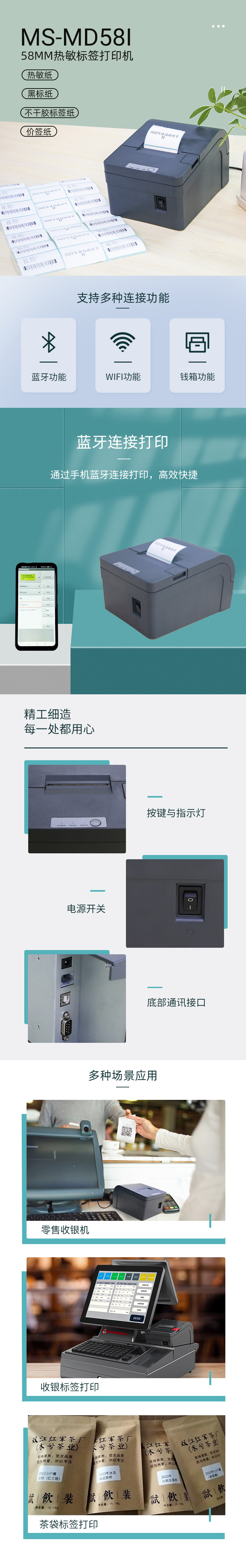 票據(jù)打印機(jī)特點(diǎn):這是一款桌面式票據(jù)打印機(jī),支持條碼打印、標(biāo)簽打印、不干膠打印、熱敏紙打印、收銀紙打印、價(jià)簽打印,打印無氣味、無碳粉、無臭氧,綠色環(huán)保,帶來更安全的打印。人性化設(shè)計(jì),紙倉(cāng)開啟角度寬,裝紙維護(hù)便捷,小巧機(jī)身,適用于狹窄的柜臺(tái)空間,藍(lán)牙、錢箱接口完善,58mm票據(jù)打印機(jī)是零售、餐飲行業(yè)打印解決方案。
