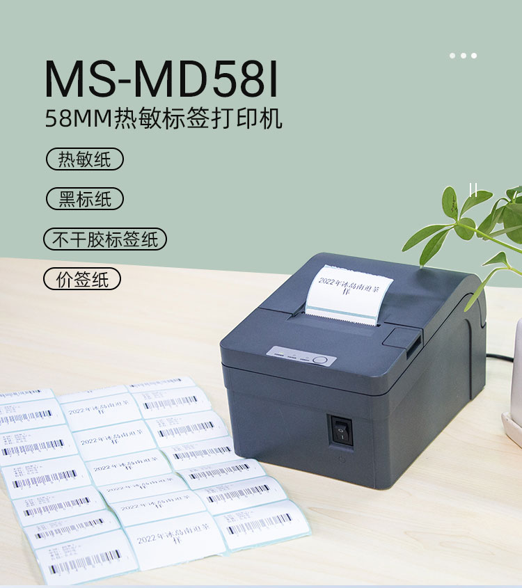 美松打印機MS-MD58I是一款桌面式的熱敏不干膠標簽打印機,具有多種通訊接口可選擇,在打印方面可選擇普通熱敏紙、黑標熱敏紙和帶間隙的不干膠熱敏紙.