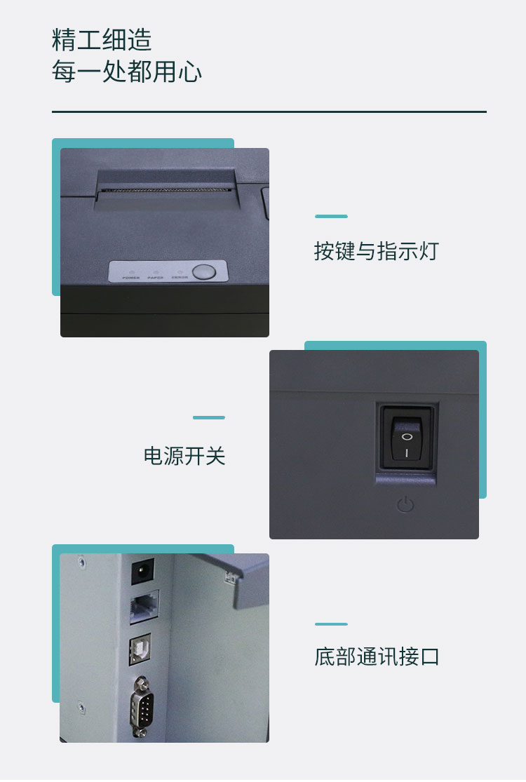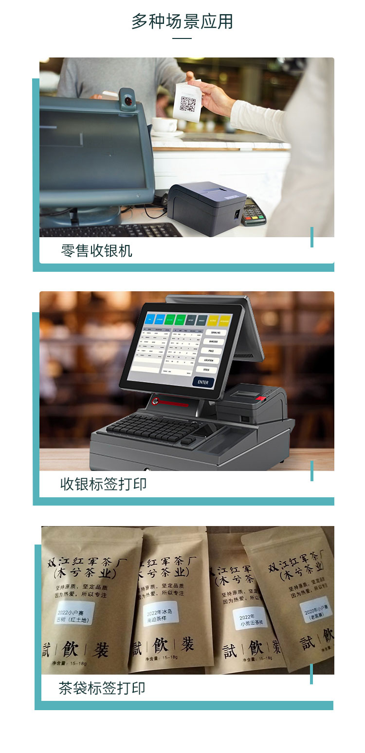 打印紙 | 普通熱敏紙、黑標熱敏紙、帶間隙不干膠熱敏 | ||