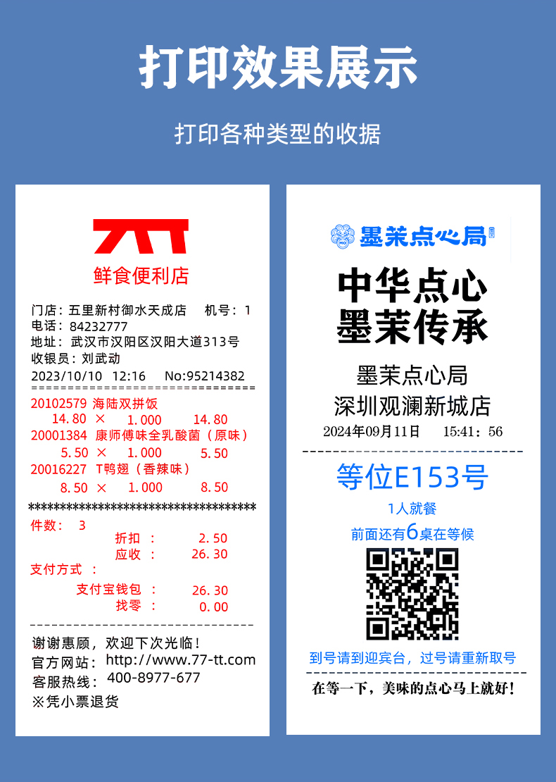 1.廚房打印,支持打印機監(jiān)控功能,使用壽命長 2.功耗小,運行低成本,網(wǎng)絡(luò)斷線后可自動恢復(fù)打印,避免丟單情況發(fā)生 3.支持多個店鋪同時打印,不同平臺,不同軟件,多平臺接入,全自動接單,來單必報,接單更及時 4.高度打印速度,輕松應(yīng)對高峰期,再多的單也能輕松應(yīng)對 5.支持打印調(diào)節(jié)不同濃度,根據(jù)實際需求和習(xí)慣,打印不同色深,既能滿足不同的觀感又能有效降低打印頭的磨損,打印更清晰,保護(hù)更出色