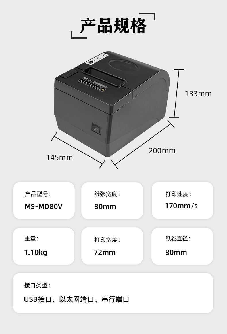80mm小票打印機 熱敏后廚房前臺收銀餐飲打印機,支持前臺收銀與后廚菜單打印、打印機帶切刀自動切紙、USB/網(wǎng)口可供選擇。在零售、餐飲、服裝、寵物、烘焙、母嬰等行業(yè)擔(dān)任前臺收銀、后廚打印、點餐系統(tǒng)、銷售單據(jù),準(zhǔn)備配貨、手機支付等功能的應(yīng)用。