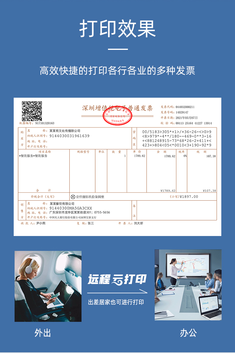 NP-DC400具有標準發(fā)票打印功能,能輕松的打印電子發(fā)票,專屬操作軟件,也可連接手機進行發(fā)票,云發(fā)票打印機