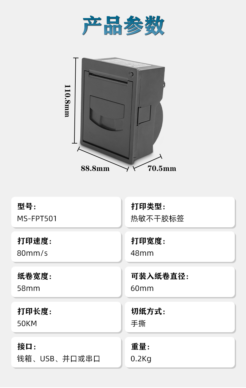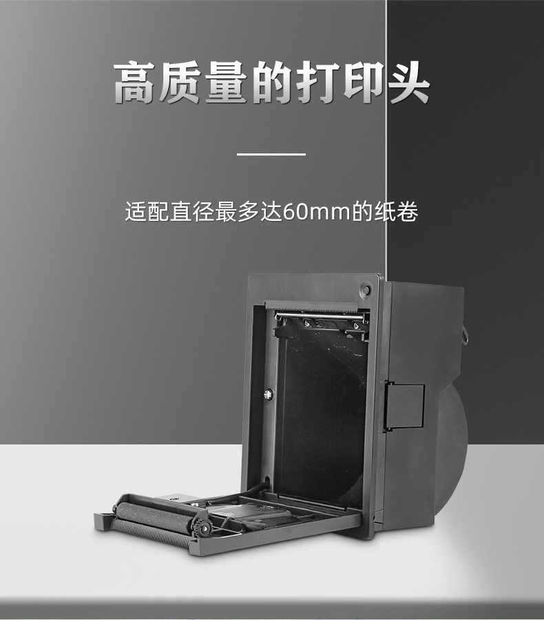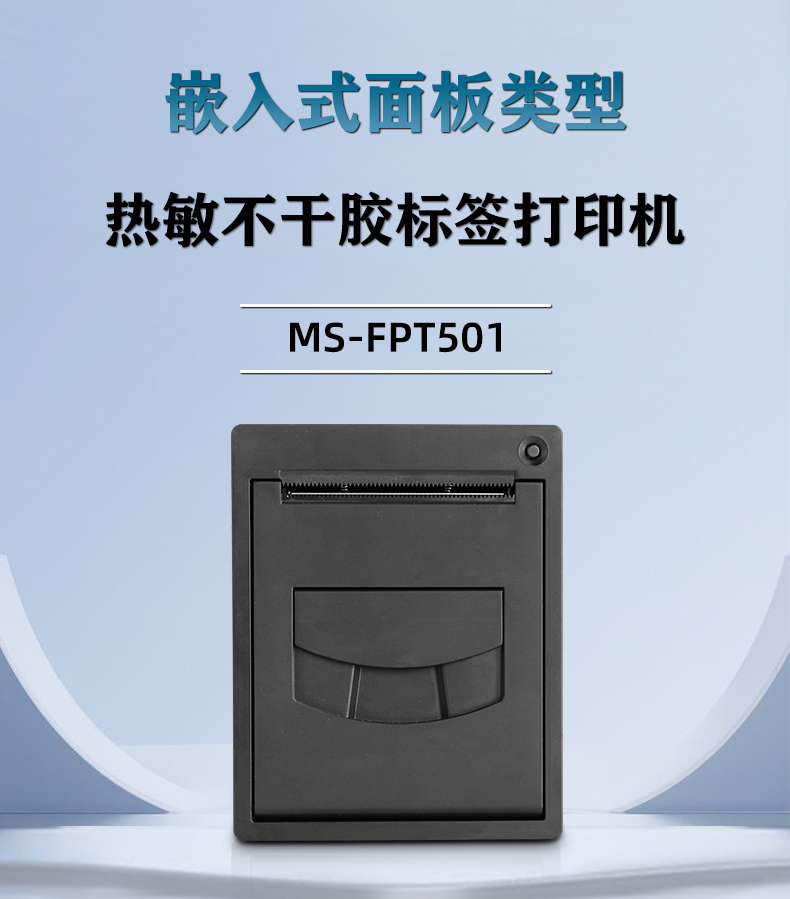 由美松研發(fā)的新型面板式熱敏不干膠標(biāo)簽打印機(jī),具有面板式打印機(jī)的易裝紙?zhí)攸c(diǎn),能輕松的嵌入到各種自助設(shè)備中,同時(shí)可快速的進(jìn)行維護(hù)換紙,MS-FPT501可打印的不干膠標(biāo)簽在58mm左右,同時(shí)可選擇多種接口,比如錢箱、USB、并口或串口(二選一),作為一款熱敏不干膠標(biāo)簽打印機(jī),MS-FPT501可廣泛應(yīng)用于商超零售標(biāo)簽,醫(yī)療標(biāo)簽,稱重價(jià)格標(biāo)簽等多種行業(yè)標(biāo)簽。