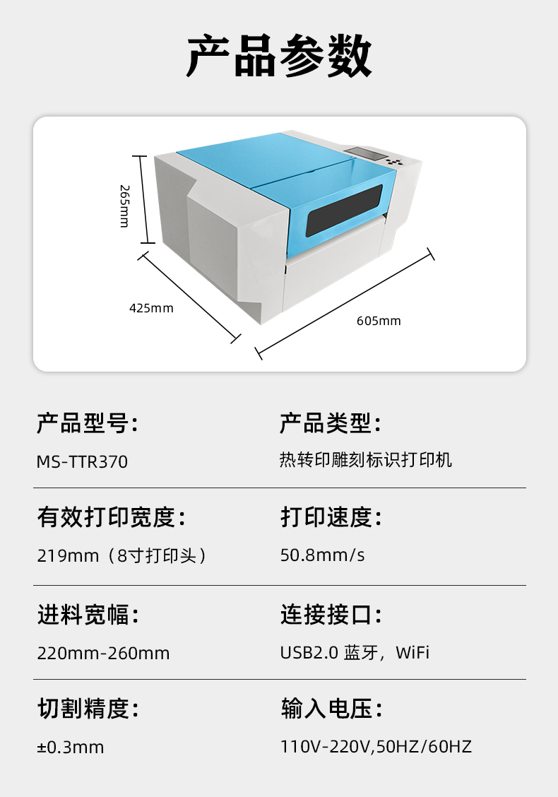MS-TTR370是由美松自主研發(fā)生產(chǎn)的一款熱轉(zhuǎn)印的標(biāo)識標(biāo)牌打印機。 和美松其他的熱轉(zhuǎn)印標(biāo)識標(biāo)牌打印機優(yōu)勢在于,MS-TTR370是一款雕刻打印機, 在打印完成標(biāo)識后,能夠直接對標(biāo)識標(biāo)牌進行雕刻切割工作,無需手動人工切割 MS-TTR370具有高精度的切割,誤差小于0.3mm,對各種圖形的標(biāo)識都能輕松完成打印切割 應(yīng)用于多種行業(yè),比如電力標(biāo)識標(biāo)牌,施工危險警示標(biāo)識標(biāo)牌,園林管理標(biāo)牌,樹木介紹標(biāo)牌,道路標(biāo)識標(biāo)牌