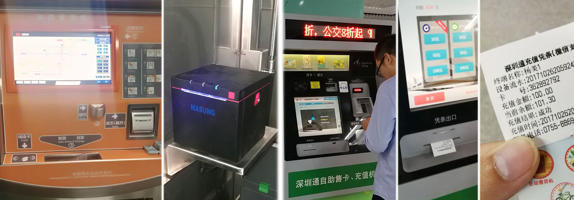 美松專業(yè)為自助服務(wù)終端提供打印掃描模塊解決方案,美松打印掃描模塊不僅遍布地鐵自助服務(wù)終端,還遍布在公用事業(yè)費繳費、電話寬帶繳費、手機充值繳費、交通卡充值、火車票購買、彩票自助購買、票務(wù)自助購買、金融機構(gòu)ATM機、游戲點卡購買、保險購買繳費、轉(zhuǎn)賬及余額查詢、信用卡還款、刷卡慈善募捐、優(yōu)惠券打印、商旅服務(wù)訂購、公共資訊發(fā)布等票務(wù)自助服務(wù)終端的各個領(lǐng)域。