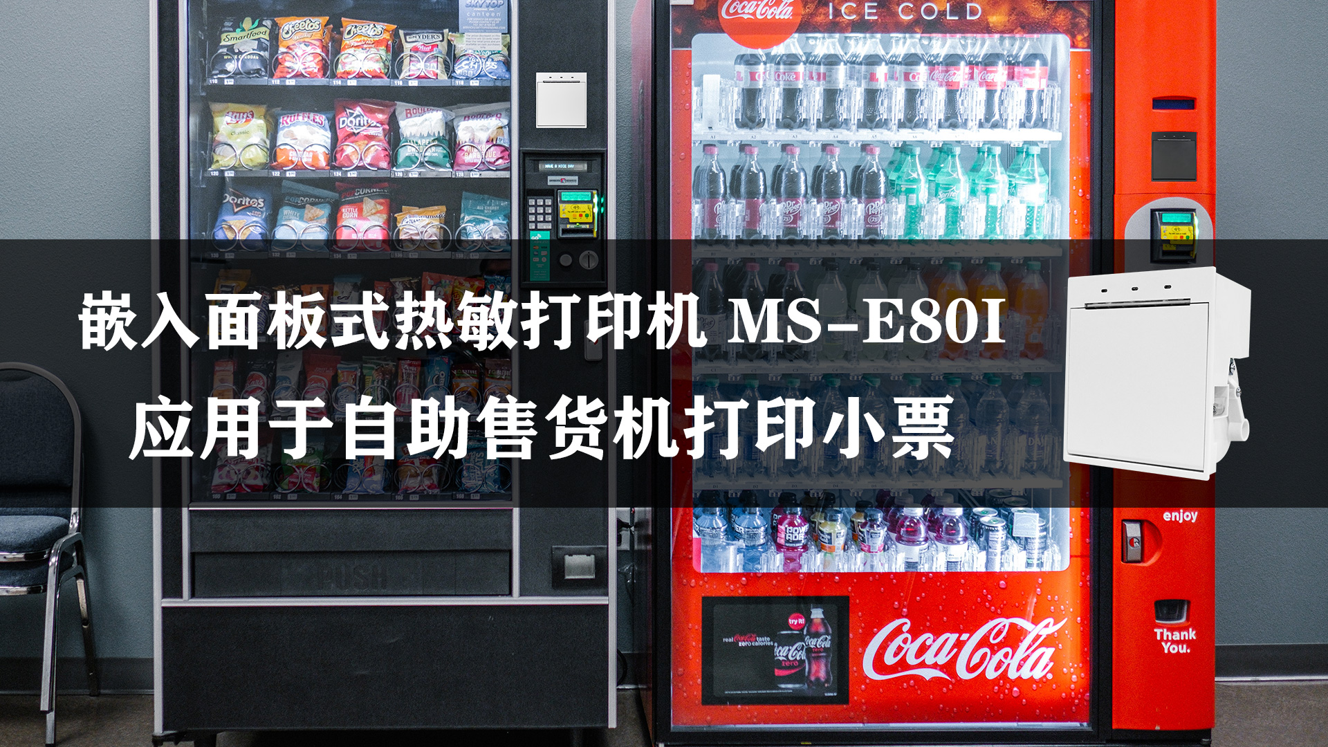 MS-E80I打印機是美松研究的一款面板式打印機,相比于傳統(tǒng)的自助嵌入式打印機來說,面板式具有能更快速的更換紙卷的特點,在不需要拆開自助終端的情況下,也可進行換紙,常常應用于各種人流較多的自助領域,這次因為MS-80I能裝入大尺寸的紙卷和快速換紙的特點,應用到了自助售貨機中,進行小票的打印。
